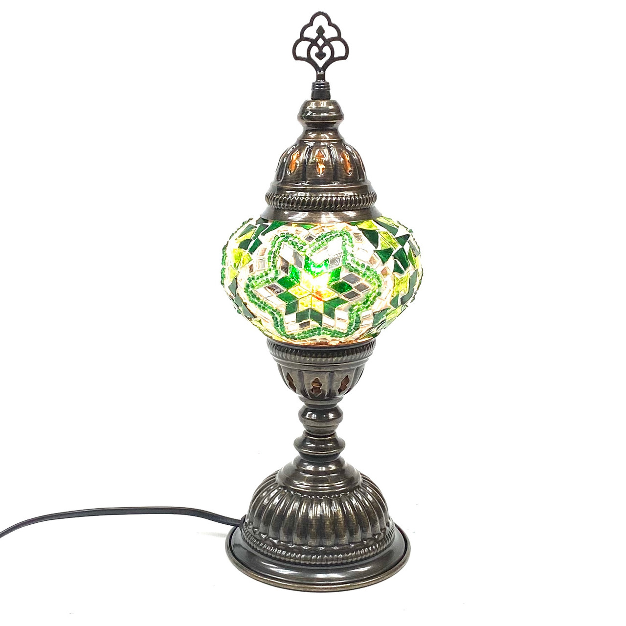 Defined by their tall, straight structure, cylinder lamps offer a more contemporary look while still honoring centuries-old mosaic traditions. The extended glass surface provides ample space for intricate patterns, allowing artisans to craft complex, repeating motifs that glow beautifully when illuminated. Their vertical profile makes them excellent accent pieces for narrow tables, bookshelves, or hallways where floor space is limited. When lit, the length of the cylinder diffuses light evenly, producing a soft yet radiant glow that instantly elevates the mood of a room. Their modern form combined with traditional glasswork creates a balance of past and present.